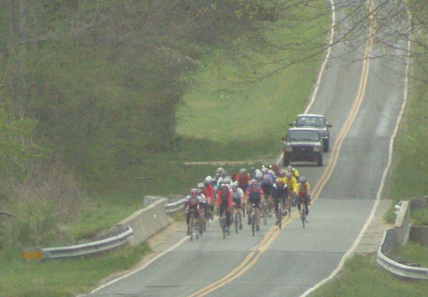 From this vantage point you can see the peleton headed up Mock Road to the intersection of Old Greensboro. Are we hurting yet? If you’re going to blow up. It’ll probably be here or in the next 10 minutes.