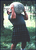 into strength for strength’s sake. He loves a challenge. In strength circles, Steve is known as Steve “Inver Stone” Jeck for a photo that appeared in a strength magazine back in the 90’s. The picture is of Steve lifting the clach cuid fir (manhood stone) in Inverness, Scotland (I think). Manhood stones were community tests or feats of strength which provided a right of passage for the challenger. The picture to the right made Steve famous in strength circles, and there’s a whole subculture devoted to stone lifting. Steve’s impact in the strength world is evidenced by the lifting of Atlas stones in the world’s strongest man competitions.