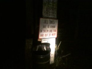 I met three lights on the trail — now they were flying. I say lights because that’s all I could see. When I first came up on them, I thought it was a truck coming at me. Hopefully, this was the first of many. Incidentally, the Thomas-Built Bus boys will supposedly be out on Thursday evenings at 6:30 to train for CX.