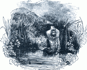 “Now I saw in my dream, that just as they had ended this talk, they drew nigh to a very miry slough that was in the midst of the plain: and they being heedless, did both fall suddenly into the bog. The name of the slough was Despond. Here, therefore, they wallowed for a time, being grievously bedaubed with the dirt; and Christian, because of the burden that was on his back, began to sink in the mire…. [Christian, speaking to Help said,]
