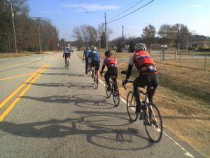 Riding East on High Point Road — the Ramblers got out Saturday for a turn south. First-timer with the Ramblers, John kept his dad company for a few miles before we all got together. Great to have you out with us, John. Hope there are many more.