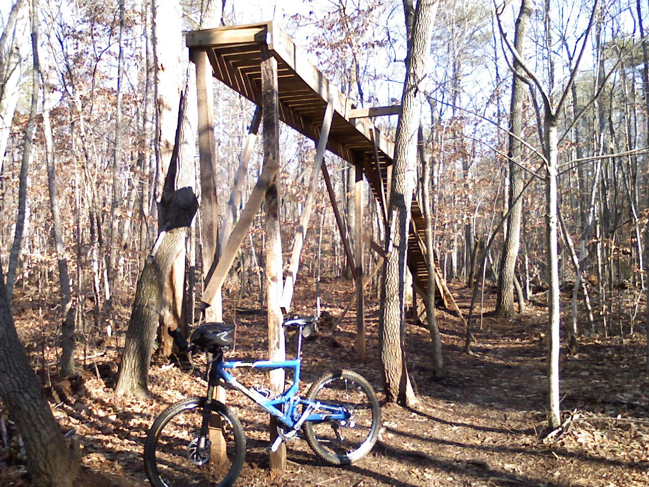 Tailights! took this pick of a jump at a local MTB trail. I’m thinking, Wow. Seems to me this could be bridge to the hospital. Too many questions come to mind. In a Monty Pythonesque vein, I’d like to ask, “Ay, Mate, your cycling buddy, is he a go-er? No what I mean? What? What? Say, no more…. Say no more.”