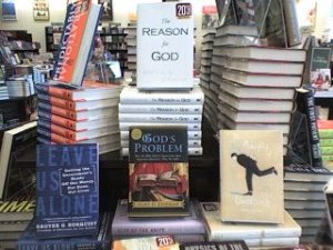 While brousing, I saw Bart Ehrman’s book God’s Problem on the same table. (The picture you see was staged. Wha? Am I reporting news or making it?) You ever wonder why Ehrman’s seemingly provocative questions don’t really inspire while Keller’s answers move the heart and mind? I think the difference is the difference Sidney describes as the fantastic and icastic imaginations. Ehrman is fantastic — that is, he offers a vain imagining, an empty one. Keller on the other hand is icastic. He moves one towards the truth.