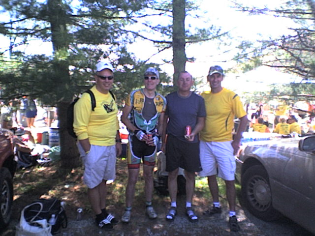Red headed out quickly again. ‘Cause he was not going to get beat up Mountain Lake by those double-metric masochists: Chum and the Good Dr. It was all pretty cool — the climb out of Newport over US 460, down and back up again. Granted, he wasn’t breaking any climbing speed records, but who cares? At about 1:30 Red had made the last decent to begin the climb up Mountain Lake in earnest. There are a couple of mental steps — up to US 460, the little descent on Salt Road the climb up to the first turn just past the woods, the rest stop, and the desperation to hear the finish line announcer and music….