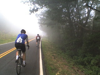 Two of the Ramblers made it to Pilot Mt to ride the 2008 edition of 3 Mountain Madness (aka 3 Mountain Metric). Red and Chum lined up, and Red would like everyone to know that he was in front of Chum for a good 30, er, meters or so. The peleton quickly splintered, and it was each Rambler for himself.