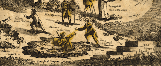 artwork: detail from an illustration of The Pilgrim’s Progress or Christian’s journey form the City of Destruction in this evil World to the Celestial City; Published July 1, 1813 by J. Pitts No 14 Great St Andrews Street Seven Dials.