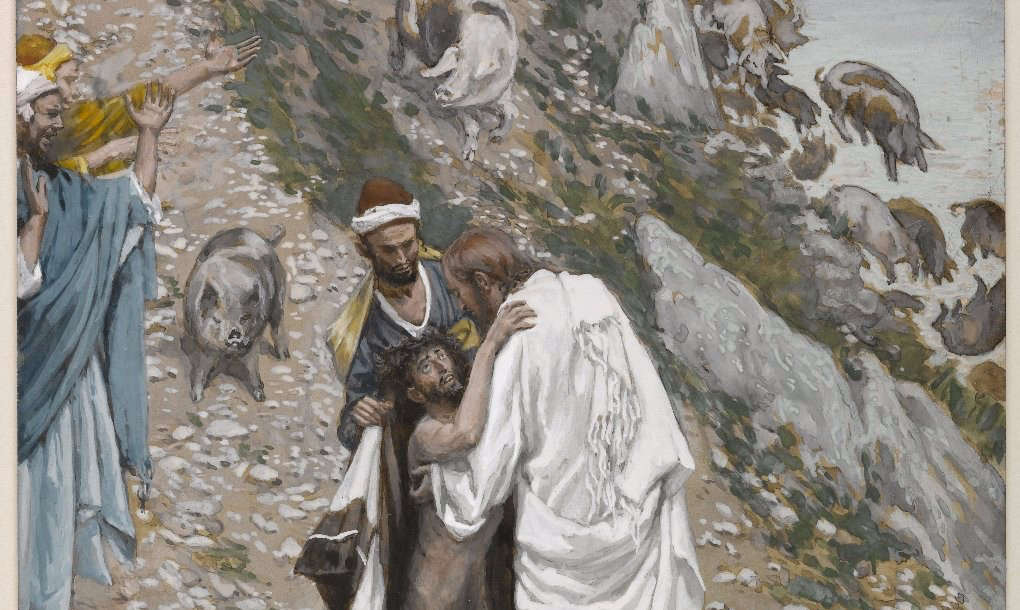 This sonnet is based on the following passages which tell of the healing of the Gerasene demoniac from Mark 5:1-20, Luke 8:26-39, and Matthew 8:28-34. Jesus, having delivered the disciples from the terror of the night storm, arrives on the other side of the Sea of Galilee and is confronted by a demoniac who roams naked among the tombs of his people. The story of the demoniac’s ruin, isolation, and degradation is particularly desperate and sad. His neighbors have given up on either helping or managing the demoniac in his ravings, and he himself is as good as dead, living naked among the tombs. A question provoked by this event is, can there be hope when there is no hope…when one has been given over to demons and death?
