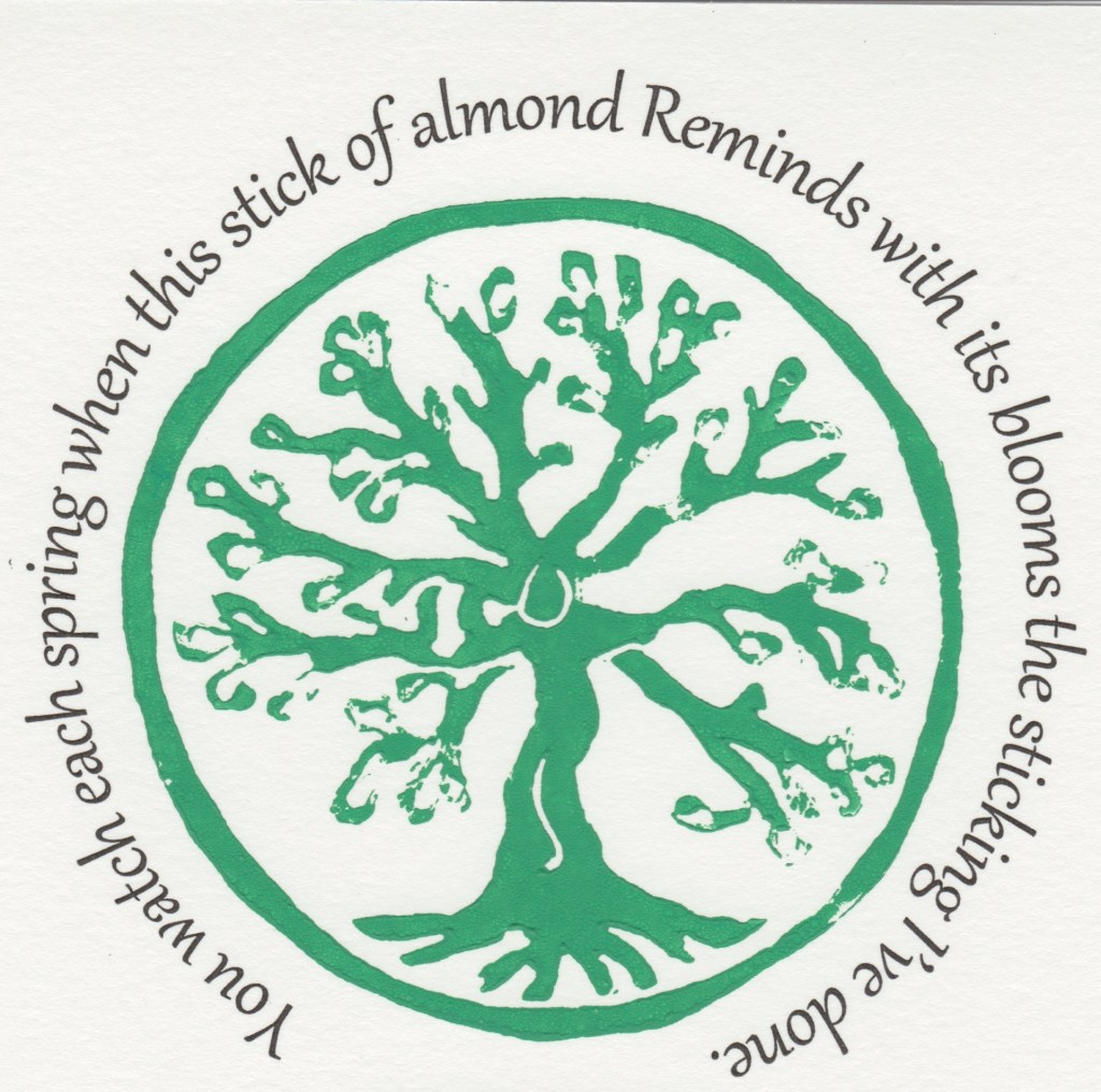 This poem is based on Jeremiah 1:1-19, but it takes its inspiration from Eugene Peterson’s translation in The Message of that passage. Peterson’s translation of the the Hebrew pun (almond/watching) with the English homonym/pun “stick” is brilliant.