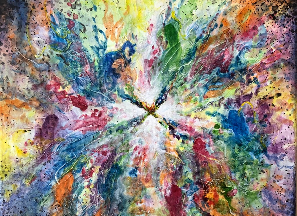 This is the final poem in a series for Grace Kernersville’s Jesse Tree project. The poems in the series are attempts at ekphrasis. A gifted artist in the congregation in which I pastor have provided abstract paintings from which the poems have derived their inspiration. This painting is entitled, The Nativity. Have a look at the painting, How do you read it?