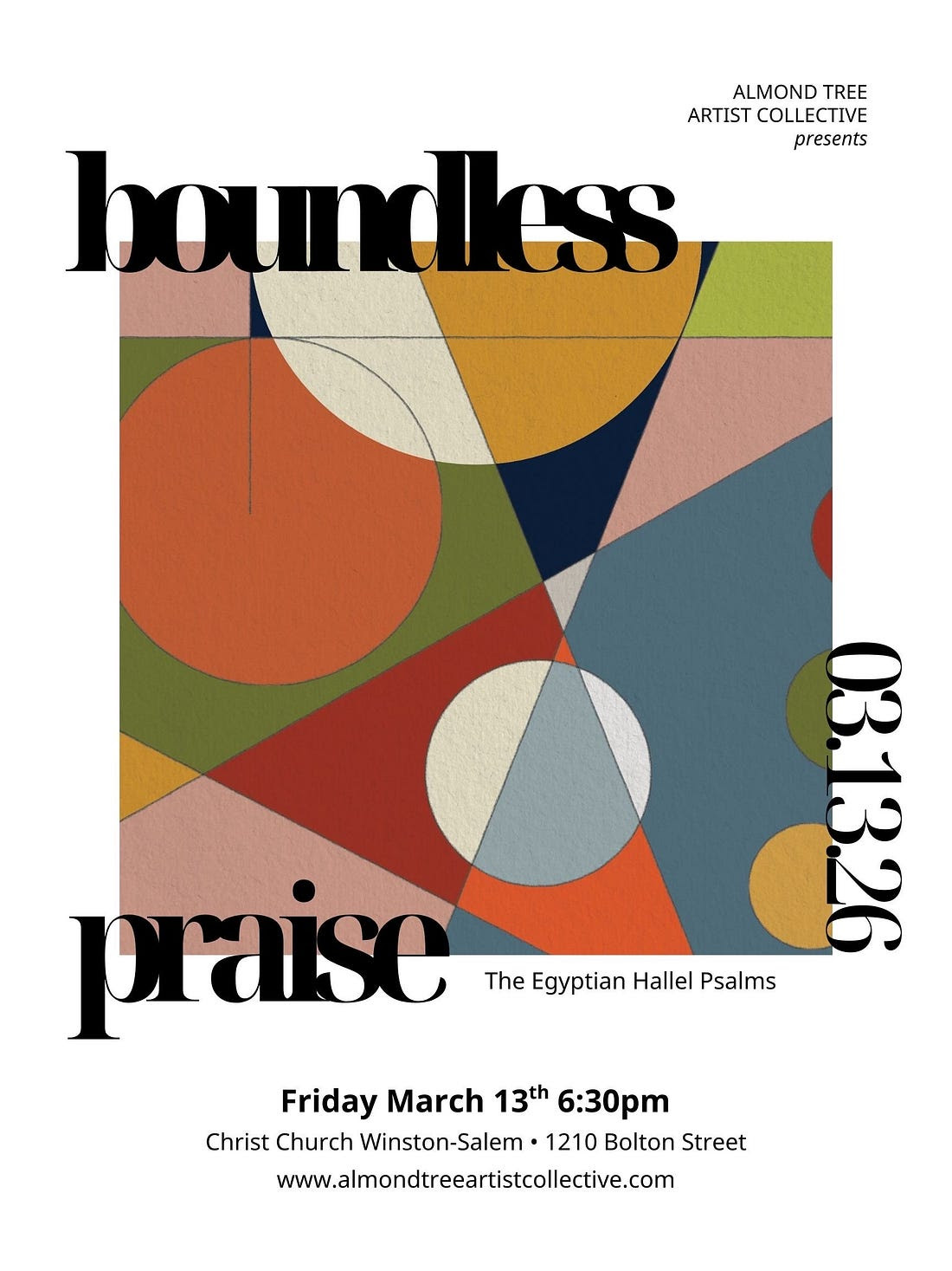 The first of those projects is an Almond Tree Artist Collective exhibit based on the Egyptian Hallel Psalms (Psalms 113-118). These psalms were the hymnbook of Passover week and are full of the themes of gratitude for the Lord’s redemption and praise for his salvation. If you’d like to join us for the opening presentation and reception, it will be held at Christ Church Anglicanin Winston-Salem, NC. Here’s the invitation. Please consider yourself invited.